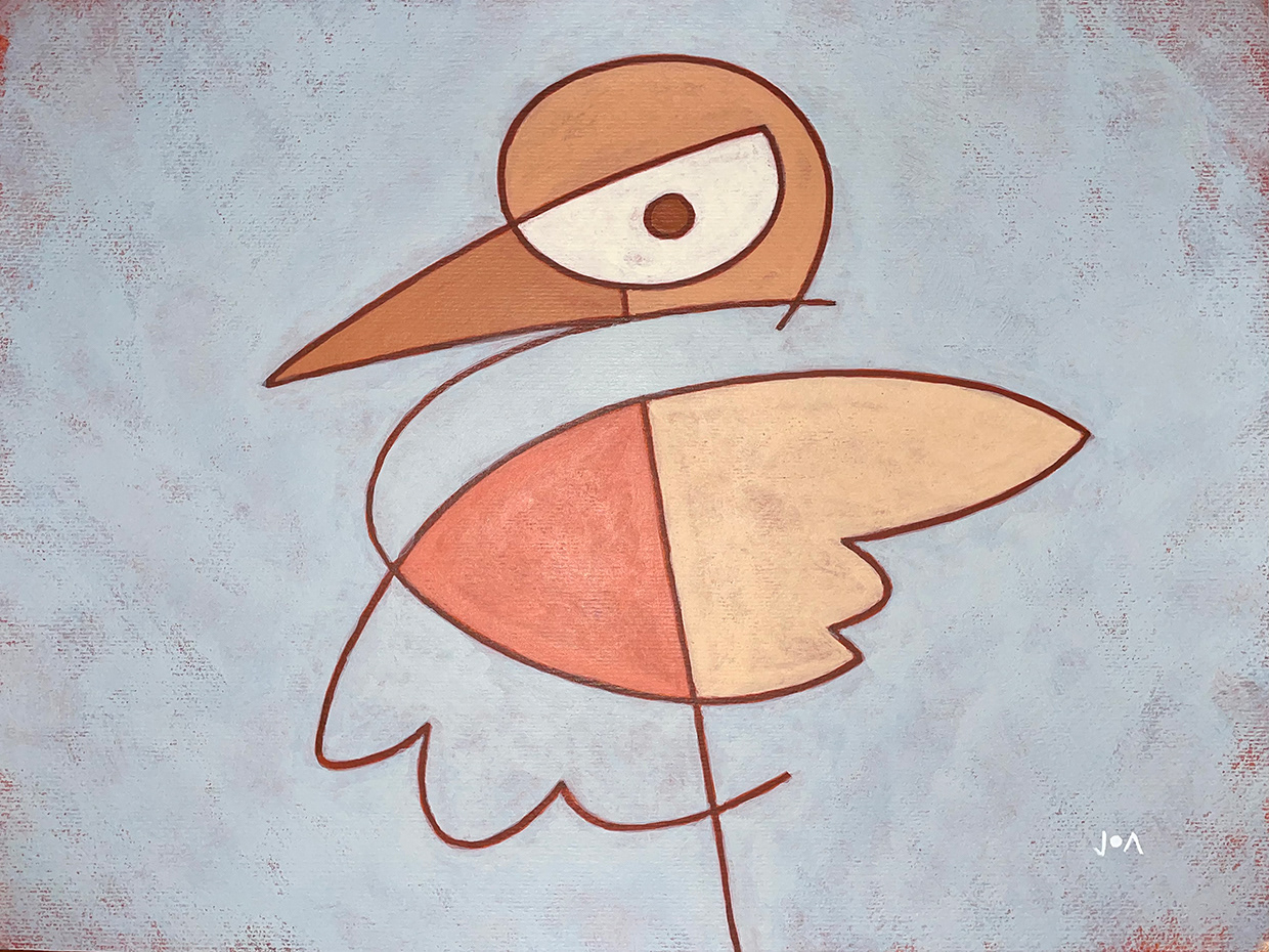 Standing bird - acrylic on paper, 40x30cm